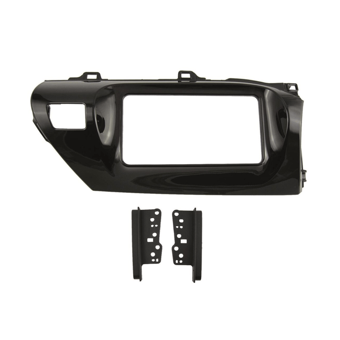 The Connects2 CT23TY97 is a premium Double DIN fascia adapter designed specifically for Toyota Hilux models from 2015 to 2020. Finished in high-gloss black, it ensures a seamless integration of an aftermarket stereo while preserving the original dashboard aesthetics.